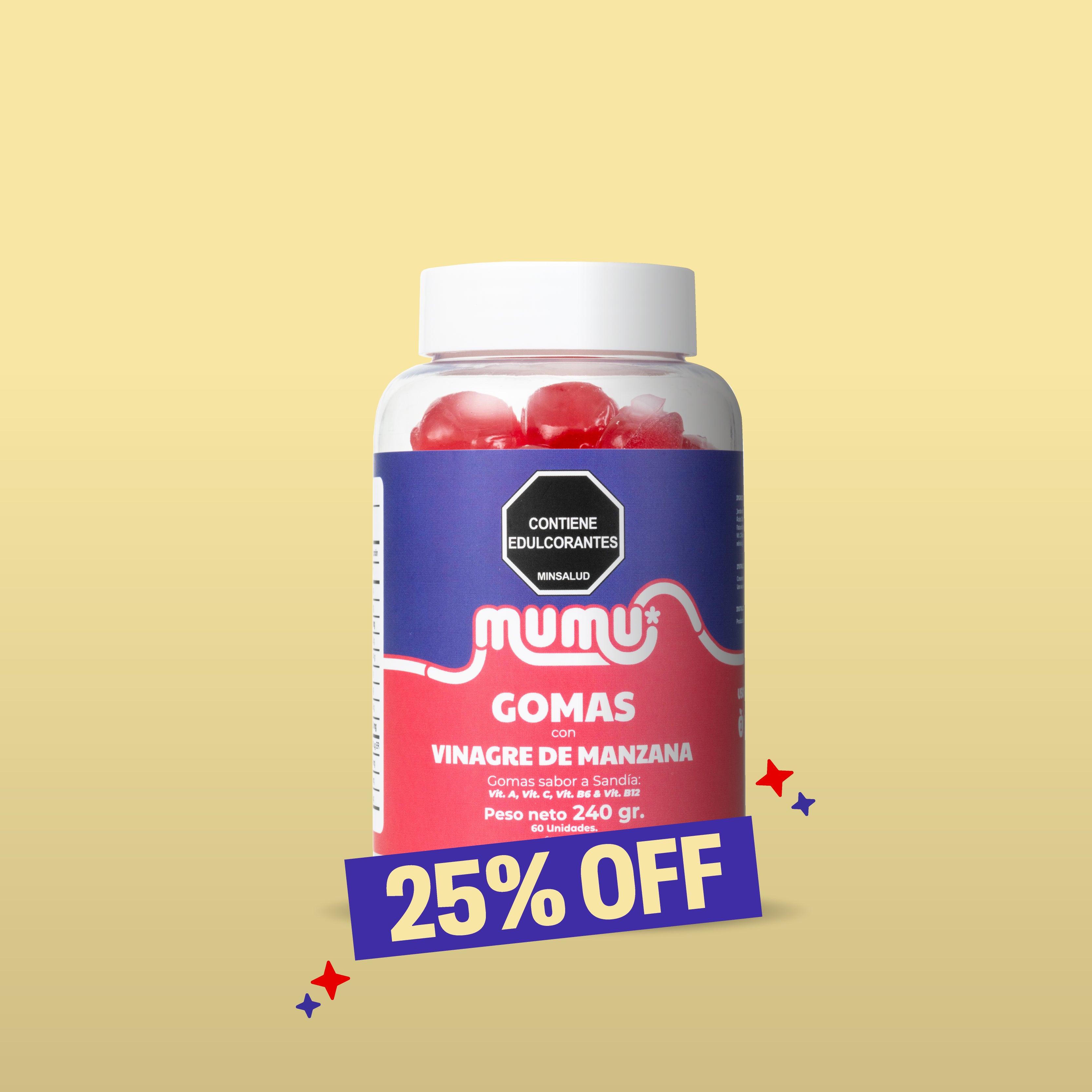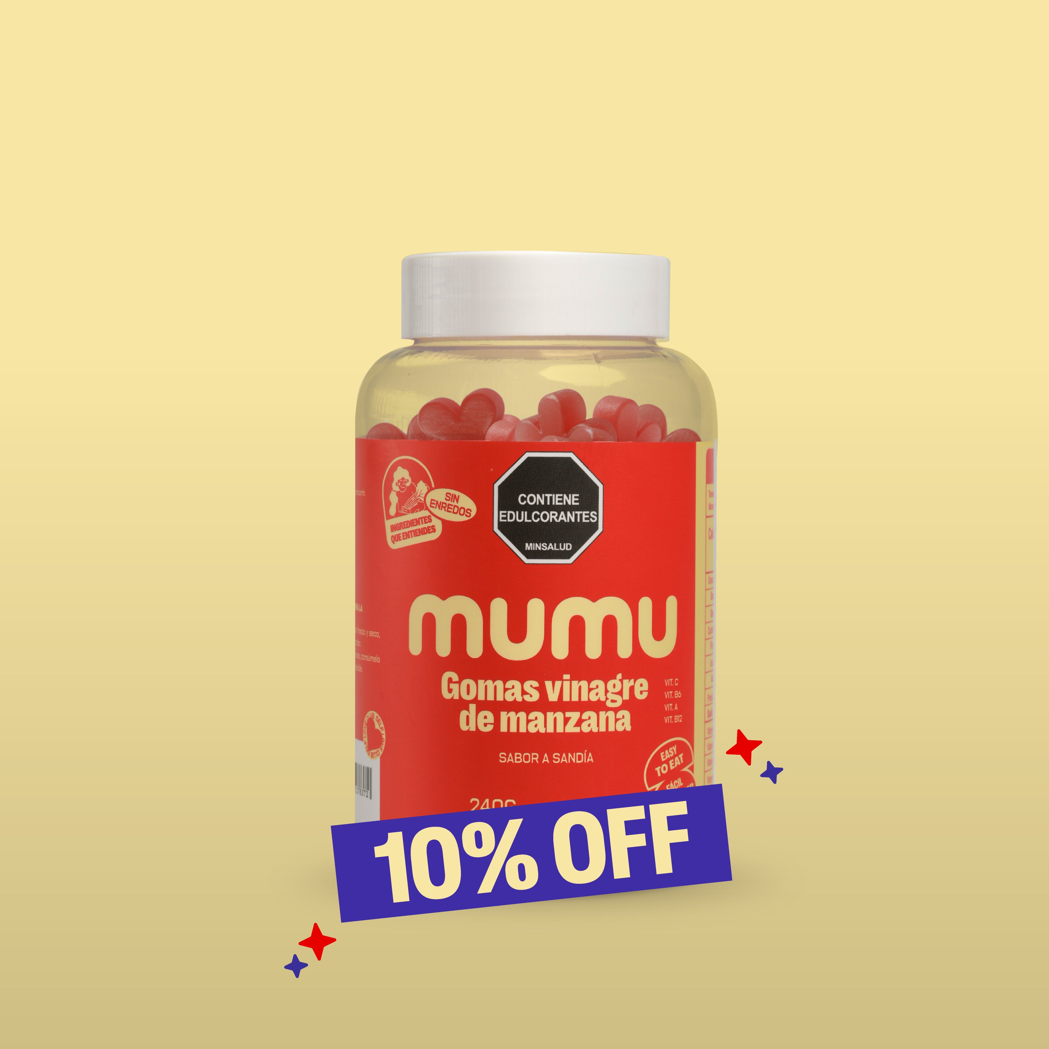 Las Gomitas de Vinagre de Manzana de MUMU son una forma práctica y deliciosa de incorporar vinagre de sidra de manzana a tu rutina diaria. Su fórmula combina vinagre de sidra de manzana, fibra, té verde y vitaminas que apoyan la salud digestiva, ayudan a controlar antojos y apoyan procesos relacionados con el control del peso, sin sabores fuertes ni incomodidades.