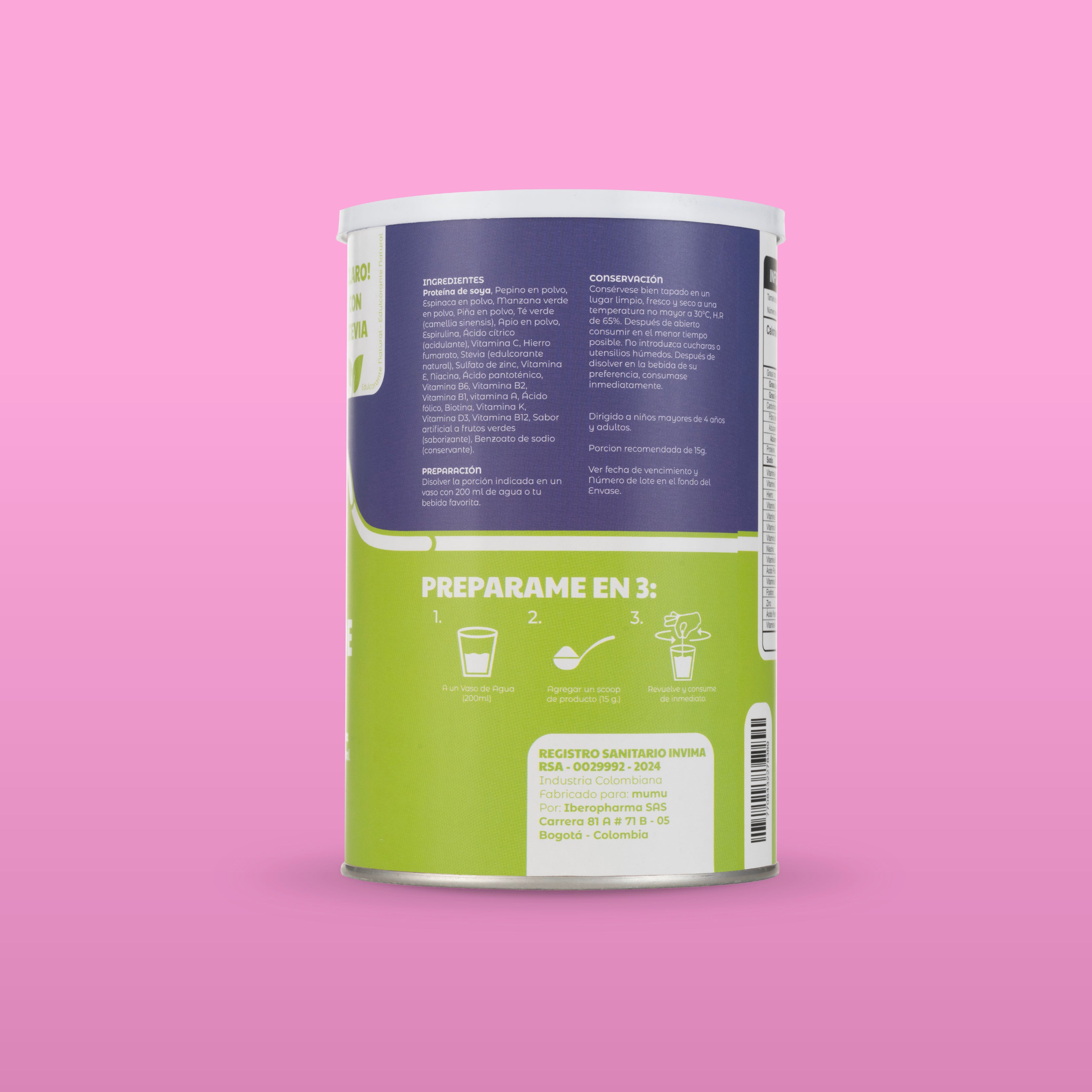 El Batido Verde de MUMU es un complemento nutricional pensado para acompañarte en tu día a día. Su fórmula combina vegetales, frutas, fibra y antioxidantes que apoyan funciones clave del cuerpo como la digestión, la desinflamación y la depuración natural.