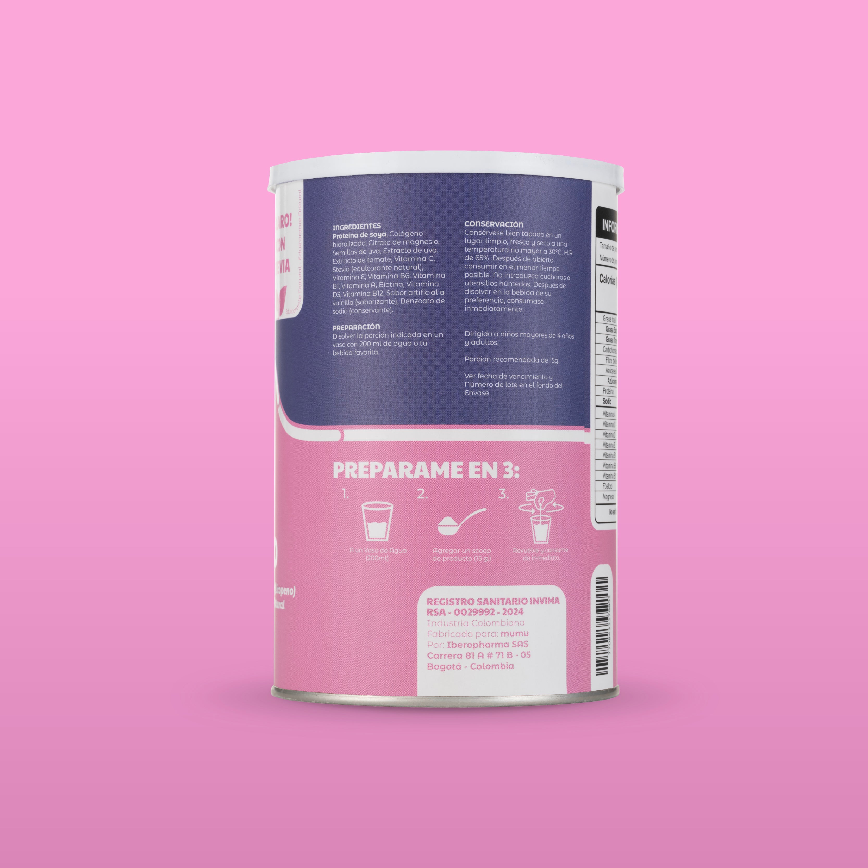 El Colágeno Hidrolizado de MUMU es un complemento nutricional formulado para apoyar la salud integral del cuerpo. Su combinación de colágeno, vitaminas y antioxidantes acompaña el mantenimiento de tejidos como la piel, el cabello, las uñas y las articulaciones, ayudando a que tu cuerpo se sienta más fuerte, flexible y cuidado con el paso del tiempo.