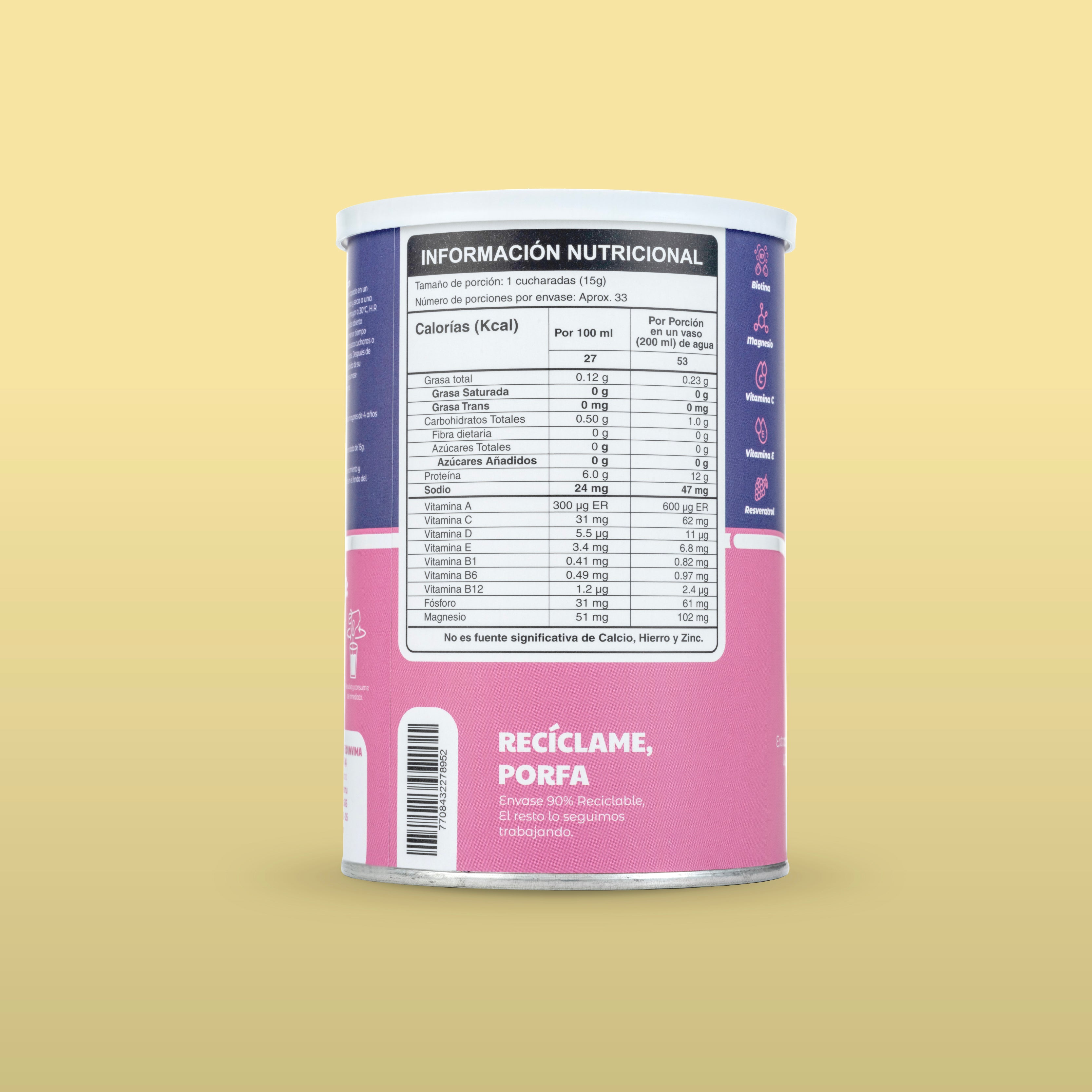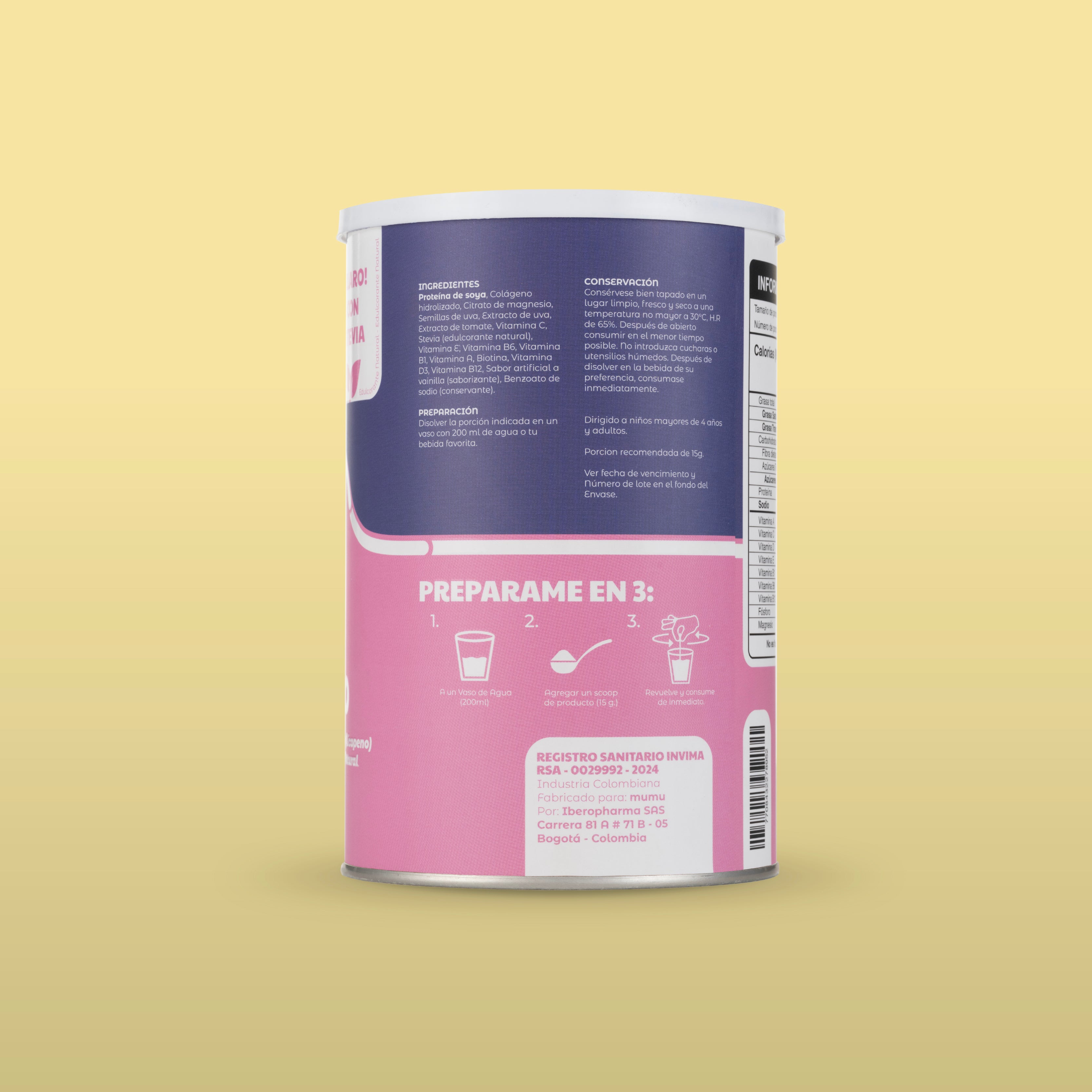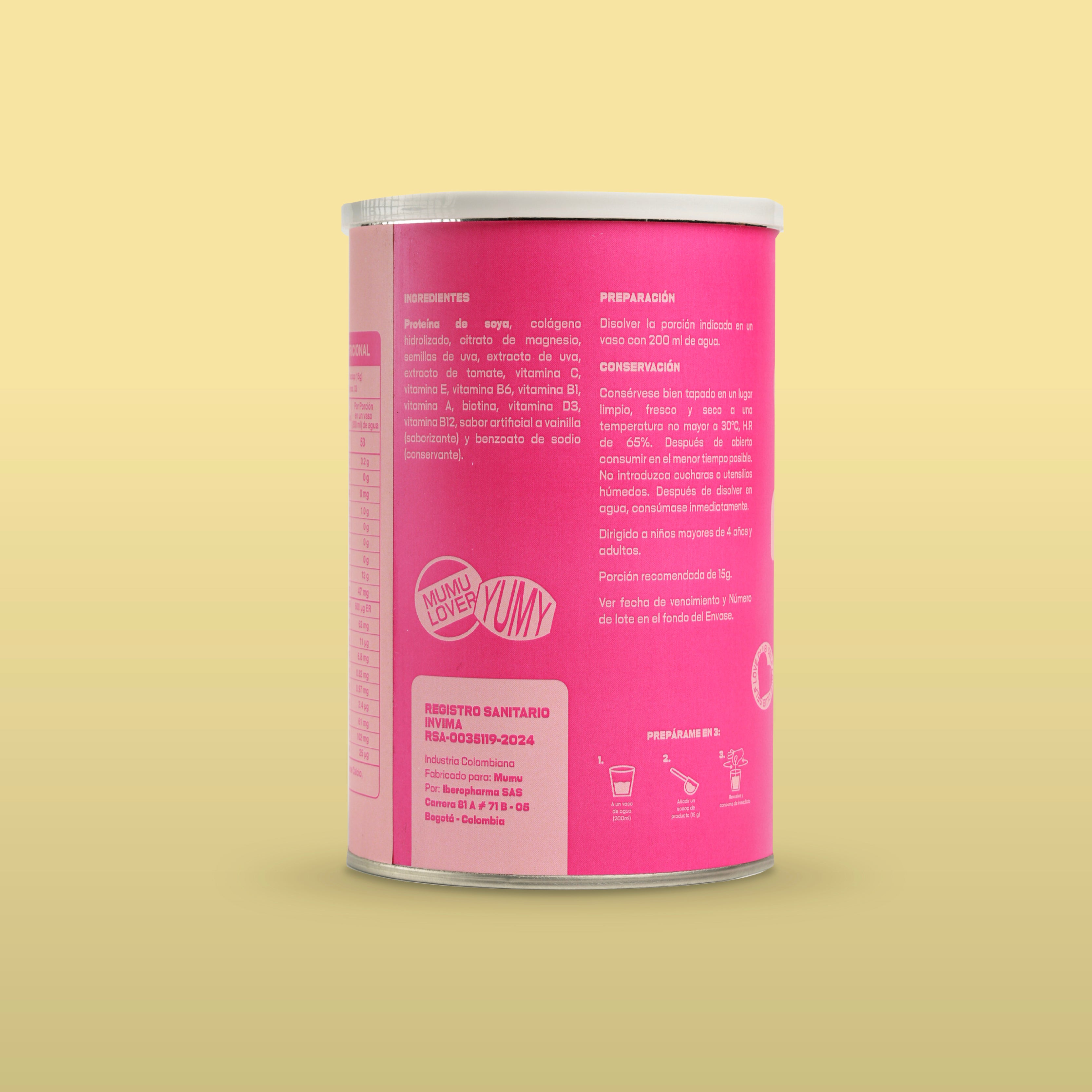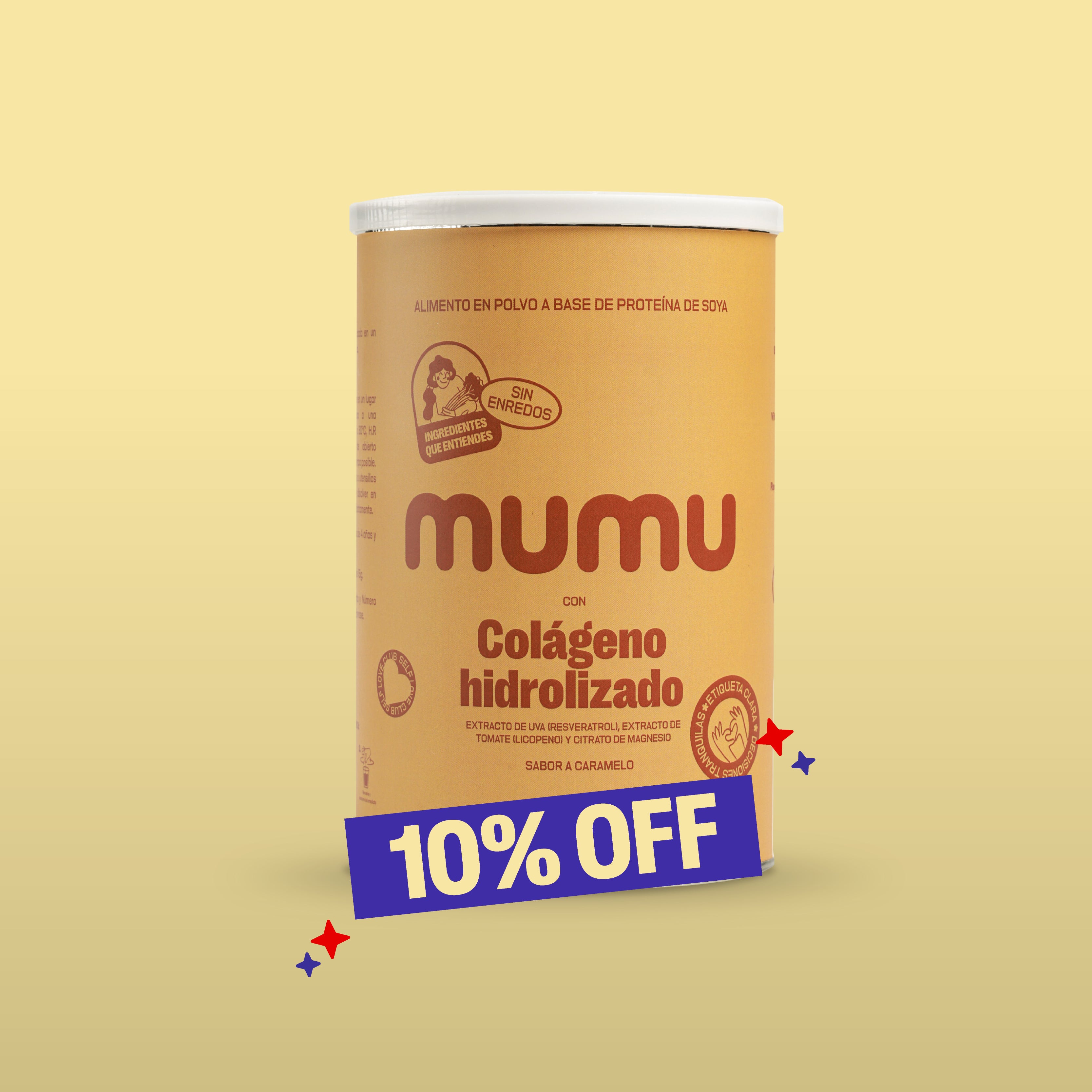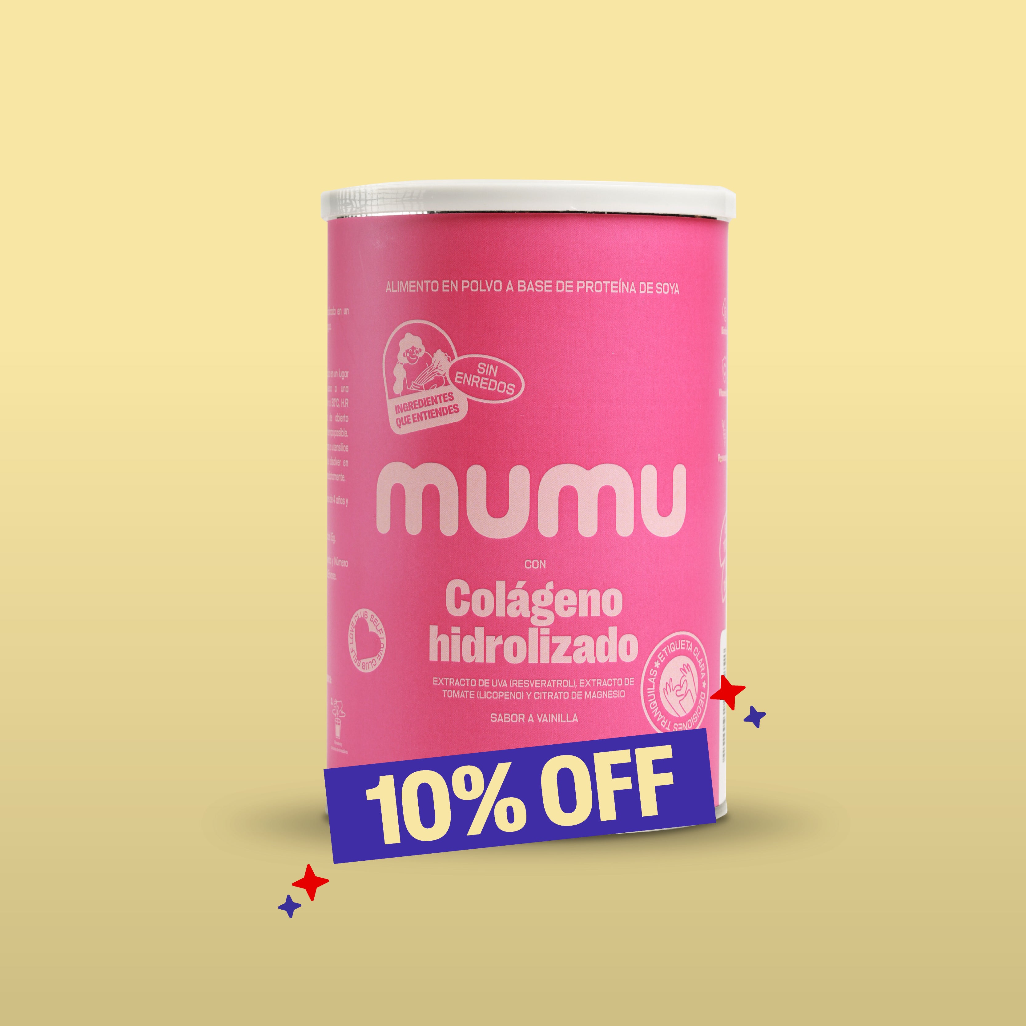El Colágeno Hidrolizado de MUMU es un complemento nutricional formulado para apoyar la salud integral del cuerpo. Su combinación de colágeno, vitaminas y antioxidantes acompaña el mantenimiento de tejidos como la piel, el cabello, las uñas y las articulaciones, ayudando a que tu cuerpo se sienta más fuerte, flexible y cuidado con el paso del tiempo.