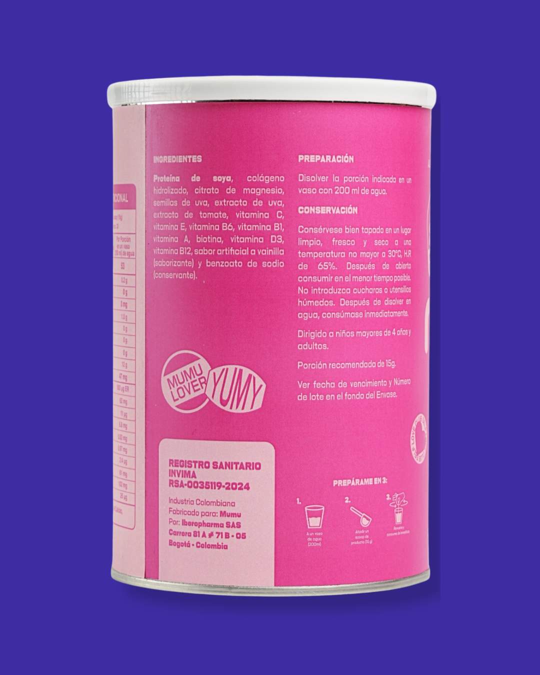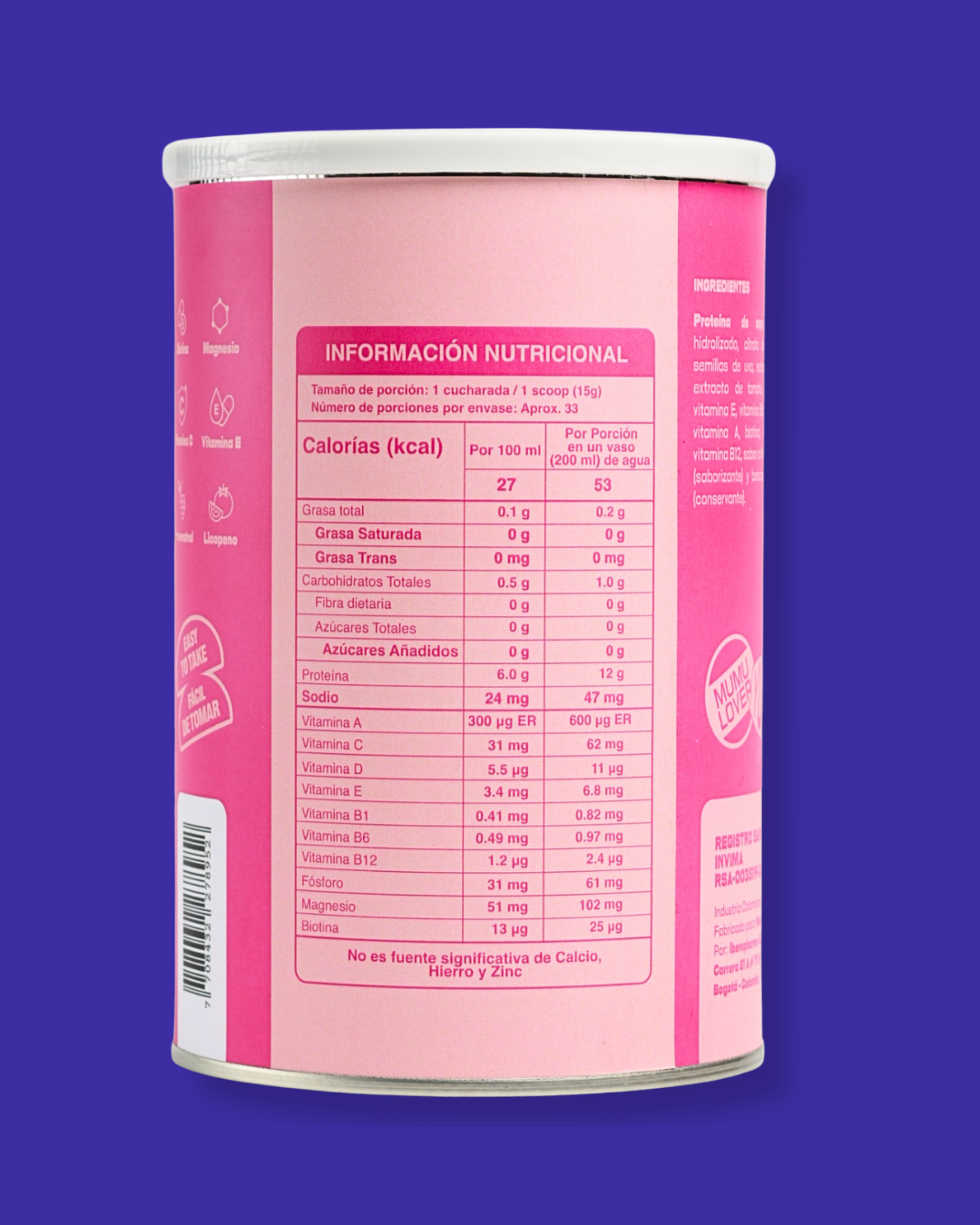 •Colágeno Hidrolizado: fuente de proteína que apoya las articulaciones y contribuye al cuidado de la piel y el cabello. Incluye vitamina C, vitamina E, biotina y antioxidantes naturales.