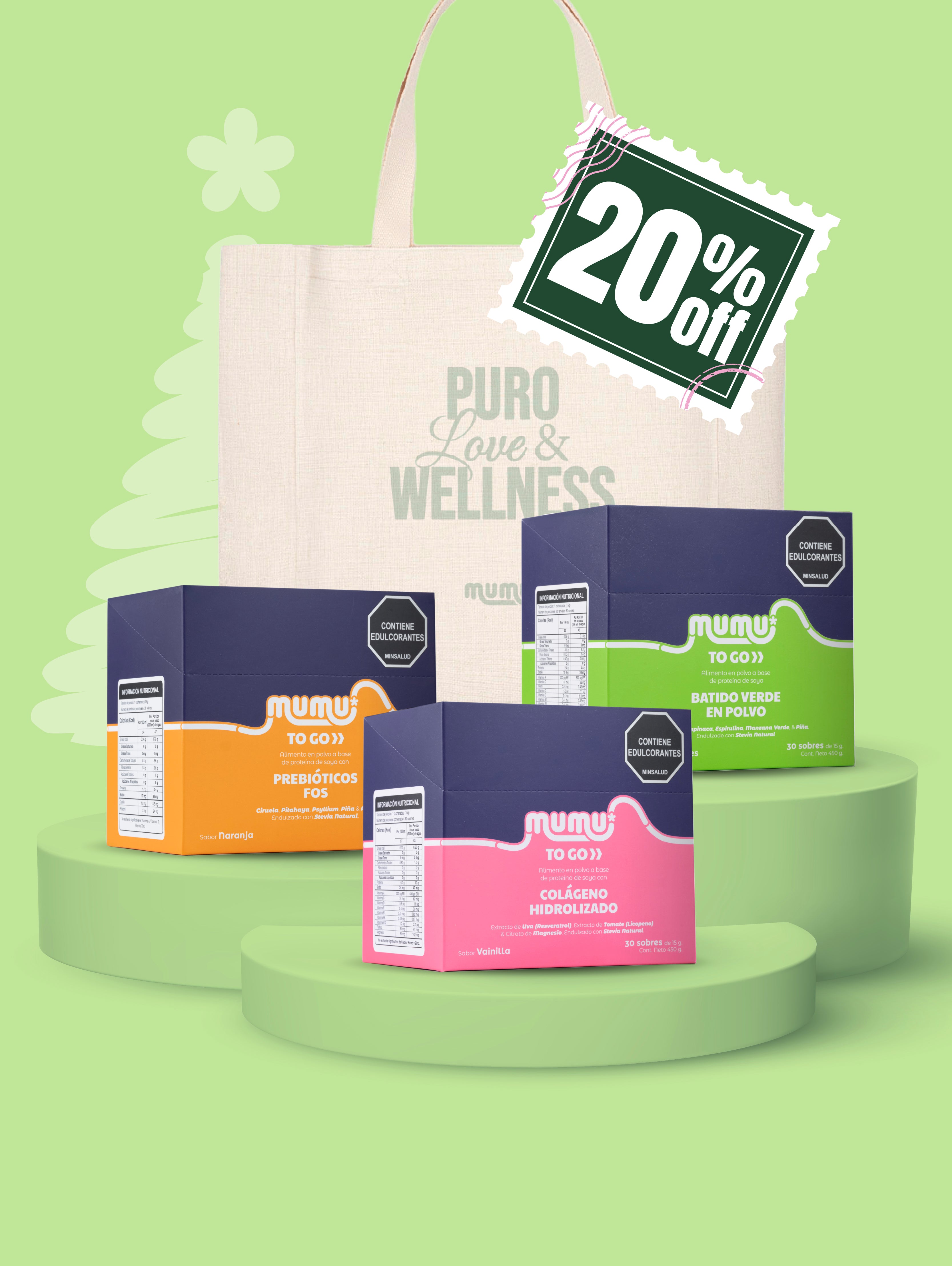 El Batido Verde To Go apoya la digestión, la Fibra ayuda al tránsito intestinal cuando comes distinto, y el Colágeno acompaña tu piel y cabello para que no se vean tan cansadas en las fotos del paseo.